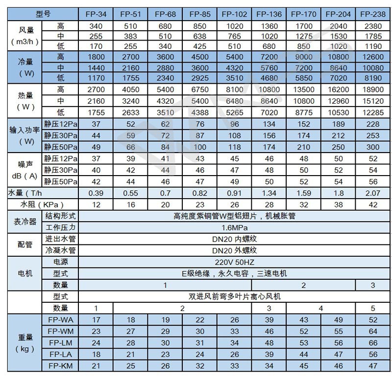 盤管:是一種采用肋片管制成的空氣水熱交換器。冷媒水(熱水)在管內(nèi)流動,因冷媒水溫度低于空氣的露點溫度,所以管外表面上有凝結(jié)水,呈現(xiàn)濕工況下的換熱,兼有熱交換和質(zhì)交換,提高了換熱效果。盤管承擔(dān)房間空調(diào)負荷的大部分或全部,管排一般為3-4排。