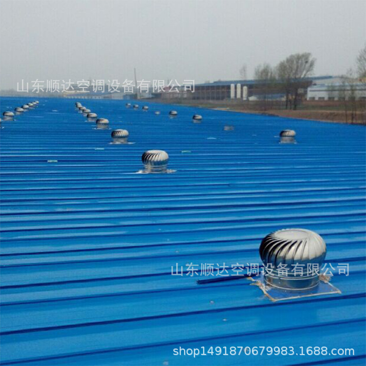 無動力風(fēng)機是利用自然界的自然風(fēng)速推動風(fēng)機的渦輪旋轉(zhuǎn),及利用室內(nèi)外空氣對流的原理,將任何平行方向的空氣流動,加速并轉(zhuǎn)變?yōu)橛上露洗怪钡目諝饬鲃樱蕴岣呤覂?nèi)通風(fēng)換氣效果的一種裝置。該風(fēng)機不用電,無噪音,可長期運轉(zhuǎn)。其根據(jù)空氣自然規(guī)律和氣流流動原理,合理化設(shè)置在屋面的頂部,能迅速排出室內(nèi)的熱氣和污濁氣體,改善室內(nèi)環(huán)境。