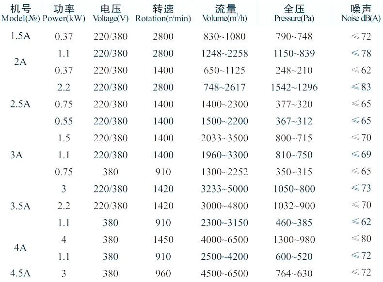 4-72型離心式通風(fēng)機可輸送空氣和其他不自燃的、對人體無害的、對鋼材無腐蝕性的氣體。氣體內(nèi)不允許有粘性物質(zhì),所含塵土及硬質(zhì)顆粒物不大于150mg/立方。氣體溫度不得超過80°C。該風(fēng)機具有良好的氣動性能、運轉(zhuǎn)平衡、振動小、效率高、壽命長等特點。廣泛適用于工礦企業(yè)、大型建筑物、賓館酒樓等室內(nèi)通氣換氣。B4-72型防爆型離心式通風(fēng)機、主要有鋁葉輪、機殼、進風(fēng)口等部分與防暴電機組成、可作為易燃揮發(fā)性氣體的通風(fēng)換氣只用、其性能和安裝尺寸同于4-72型。F4-72型為防腐型離心式通風(fēng)機,主要用不銹鋼(或玻璃鋼)材質(zhì)制成的葉輪、機殼、進風(fēng)口等部分與電機組成,可用于輸送腐蝕性氣體,其性能與安裝尺寸同于4-72型。